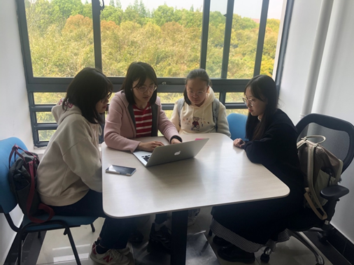 冯珍妮老师(左二)辅导本科生参加上海市计算机计算机应用设计大赛