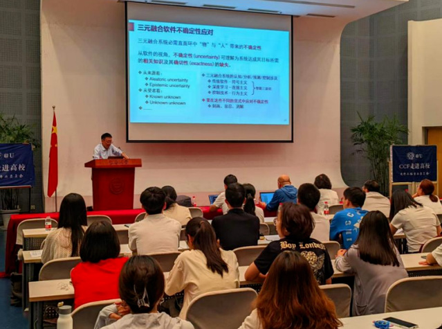 2023年9月16日下午,应东华大学计算机学院邀请,中国计算机学会(CCF)软件工程专委会与系统软件专委会联合举办了专委走进高校活动。在本次活动中,多位国内软件领域的杰出学者与东华大学计算机学院的师生,共同探讨了软件工程与系统软件领域的前沿课题,展望了未来的发展方向。本次活动邀请到了四位专家进行技术报告,他们是CCF系统软件专委会主任、北京大学计算机学院教授金芝,CCF软件工程专委会主任、南京大学计算机科学与技术系教授李宣东,CCF软件工程专委会副主任、复旦大学计算机科学技术学院副院长及教授彭鑫,以及南京大学计算机科学与技术系副主任及教授马晓星。与会人员包括东华大学计算机学院院长方志军、书记杜明、副院长石秀金、副院长常姗,以及百余名学院教师及学生。东华大学计算机学院院长方志军教授,首先代表学院热烈欢迎出席本次活动各位专家,特别强调本次活动对加强东华大学与CCF的合作以及引导本院师生面向计算机及软件技术前沿确立科研方向都具有重要的作用。会议的报告环节由常姗教授主持。马晓星老师的报告“人机物融合软件及其不确定性应对”探讨了人机物融合软件及其应对不确定性的重要性。他强调了人、机、物融合趋势,包括数字化、信息化、智能化和超级自动化的发展,以及这种趋势带来的社会信息空间与物理世界的融合。马老师以软件定义一切的概念为例,说明了软件在现代汽车制造中的关键作用,并强调了软件构造方法的变革。报告还提到,随着人机物融合的发展,软件的角色已经从信息处理演变为应用价值观的主要驱动力,管理系统复杂性成为核心任务。马老师解释了软件的独特性,包括其逻辑性、灵活性以及对复杂性的管理能力。他指出,软件能够克服物理限制,支持自由的复用和组合,从而在处理系统复杂性方面具有优势。最后,他强调了传统软件工程方法与深度学习、自动控制等方法之间的差异,以及如何在人机物融合系统中容忍和应对各种不确定性。