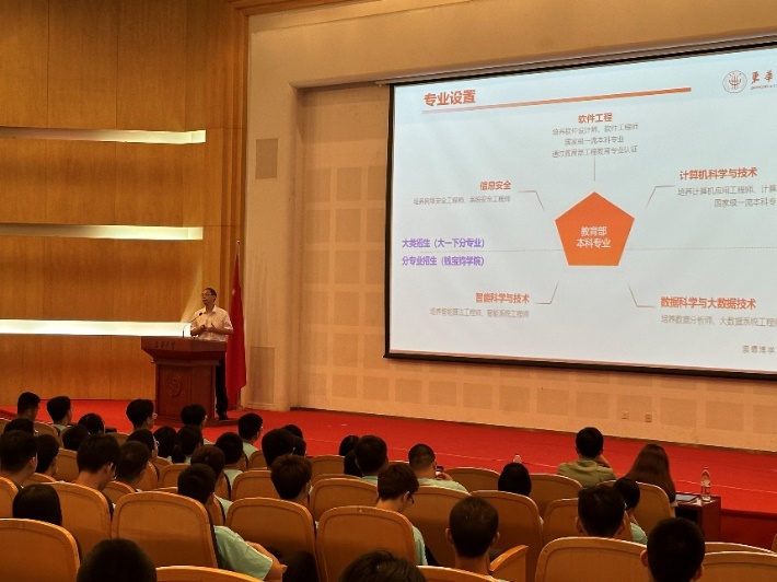 新生入学教育结合东华大学“学习进行时”学生理论宣讲团“信仰启航课”宣讲,进行理论宣讲,促进计算机学院新生思考作为新时代的IT青年如何将个人发展融入时代浪潮。