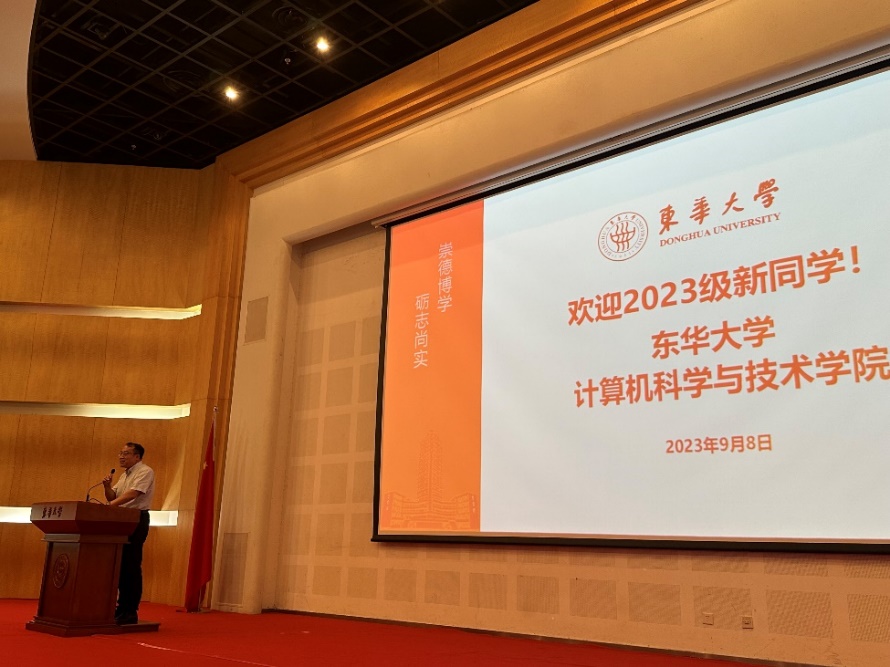 计算机科学与技术学院举行2023级新生迎新大会,院长方志军、副院长石秀金、学科规划与发展事务中心主任王洪亚、产学研协同创新中心主任王鹏伟、信息系主任宋晖、应用系主任燕彩蓉、软件系主任卢婷、实验室主任李悦、2023级新生班导师和辅导员等一同出席,会议由学院党委副书记李华婷主持。方志军院长致辞欢迎新生的到来,并从学院文化、学科专业、师资力量以及培养方式等多个角度对学院进行了详细的讲解,勉励新生在东华大学健康成长,成为德智体美劳全面发展的社会主义建设者和接班人。