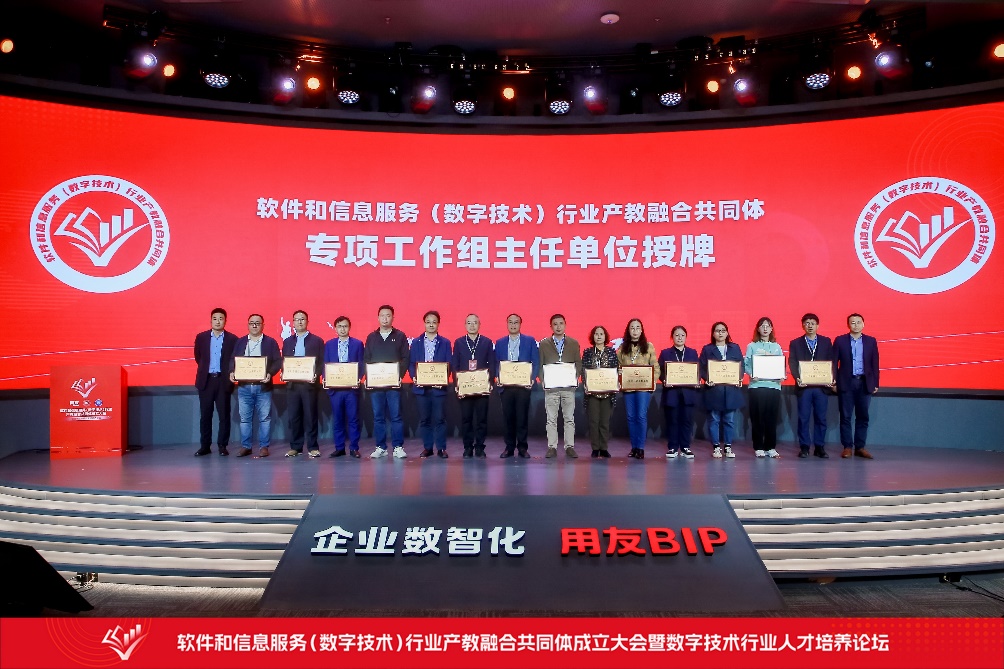 10月20日,软件和信息服务(数字技术)行业产教融合共同体(简称“共同体”)成立大会暨数字技术行业人才培养论坛在北京用友产业园举行,副校长陈革应邀参加大会,学院院长方志军、副院长石秀金等陪同。
