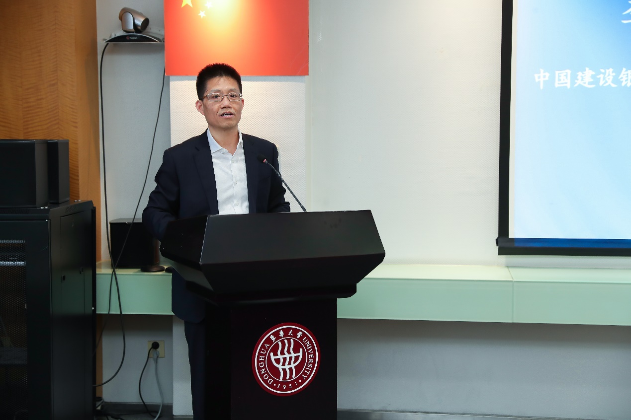 建行上海市分行副行长李朝阳在致辞中充分肯定了东华大学的办学成果,并介绍了建行基本情况,向同学们提出了两点要求——培养以家国为己任的情怀以及树立“向下扎根,向上生长”的理念。