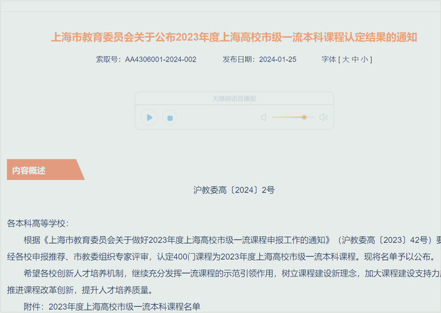 近日,上海市教育委员会发布了《上海市教育委员会关于公布2023年度上海高校市级一流本科课程认定结果的通知》(沪教委高〔2024〕2号),我院刘晓强老师主持的“人工智能技术与应用”课程荣获2023年度上海高校市级一流本科课程认定。