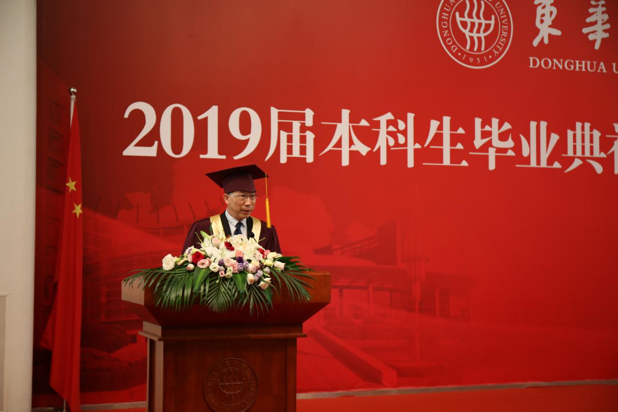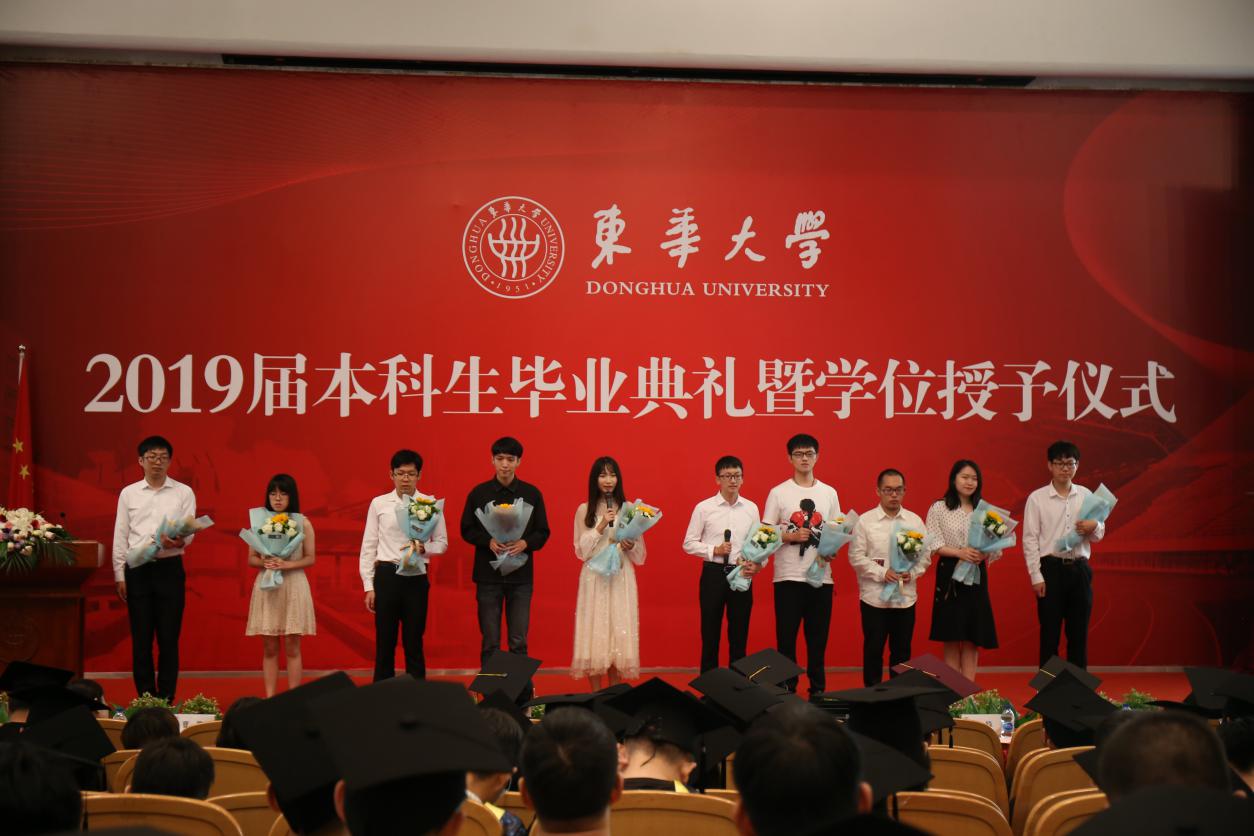 李锋副院长宣读东华大学学位评定委员会学位授予的决定,与会教授们为157名本科毕业生进行庄严隆重的学位授予仪式,典礼在由毕业生合唱的歌曲《追梦赤子心》中圆满结束。