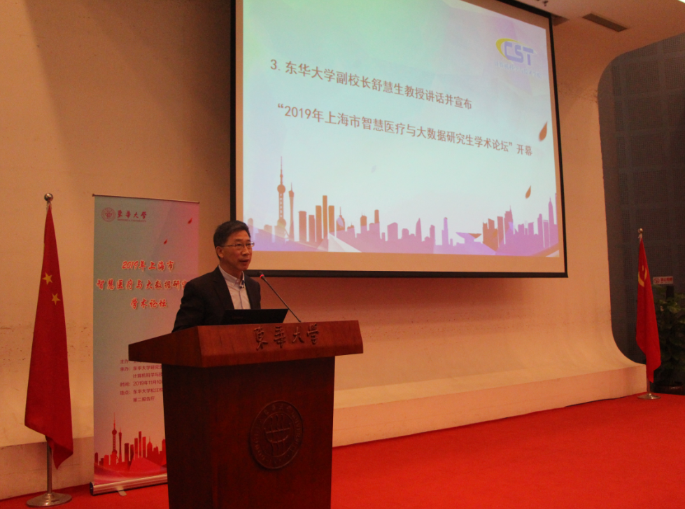 由上海市学位委员会主办、东华大学承办的2019年上海市智慧医疗与大数据研究生学术论坛开幕式于11月10日在东华大学松江校区图文中心第二报告厅举行。出席开幕式的有华东师范大学副校长周傲英、东华大学副校长舒慧生、东华大学研究生部主任俞昊、副主任刘晓艳,星空体育中国官方网站党委书记孙莉、党委副书记李华婷,以及星空体育中国官方网站的教授与教师代表,会议由星空体育中国官方网站副院长杜明主持。