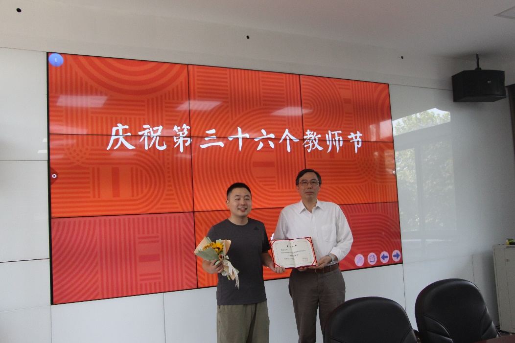在东华大学第二十届“我心目中的好老师”评选活动中,计算机科学与技术学院徐波老师荣获该奖。9月8日上午,东华大学副校长卿凤翎,党委教师工作部副部长、人事处副处长骆祎岚到计算机科学与技术学院为徐波老师颁奖。计算机科学与技术学院党委书记孙莉,副院长杜明,信息系主任宋晖出席颁奖仪式。