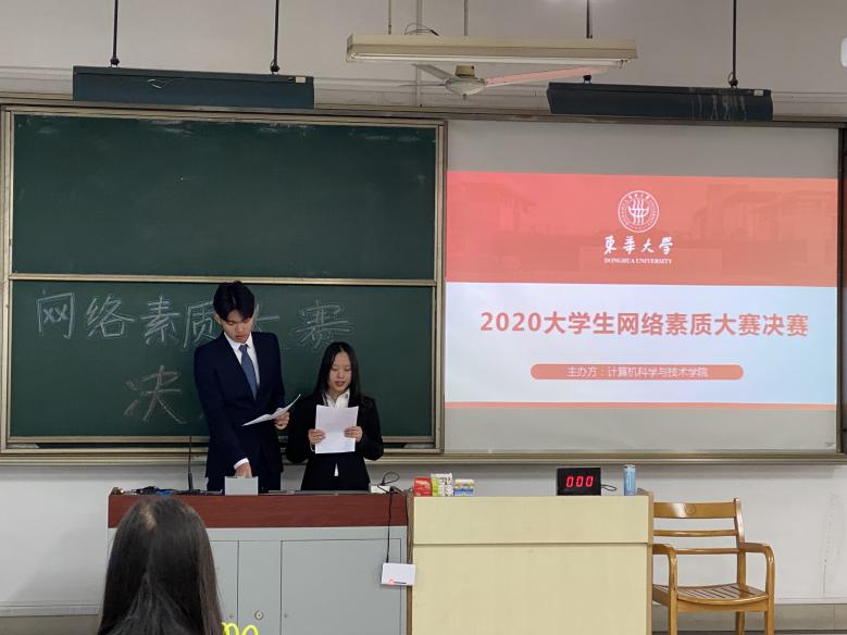 2020年 12 月 1 日,由计算机科学与技术学院学生会举办的网络素质大赛决赛于松江校区教学楼 1109 教室顺利进行。东华大学学生处韩谨璐老师,计算机科学与技术学院王璿、张政老师出席决赛现场。