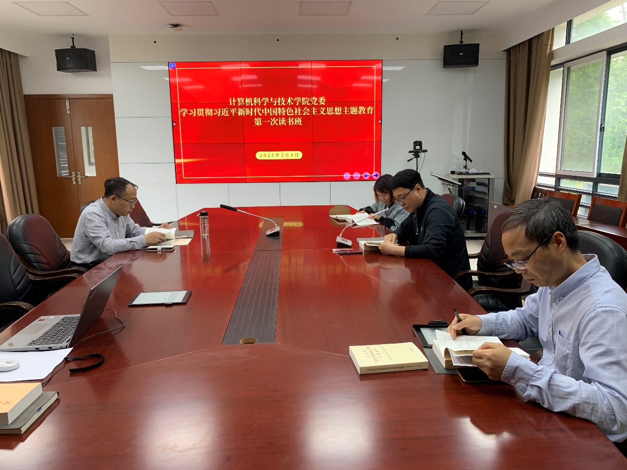 5月4日,计算机科学与技术学院学习贯彻习近平新时代中国特色社会主义思想主题教育读书班举行第一次集中学习研讨会,学院党委副书记(主持工作)杜明、院长方志军、副书记李华婷、副院长石秀金、副院长常姗参会,杜明主持学习会。
