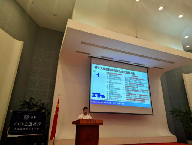 李宣东老师的报告“大语言模型:基于自然语言交互的人机协同软件开发与演化工具带来的挑战”主要阐述了大语言模型作为一种软件工具在人机协同的软件开发和演化工作环境中给人提供帮助的同时也带来了诸多的挑战。大语言模型并没有改变人在软件开发与演化中的主导地位,软件开发与演化人员不仅要能够有效引导大模型生成对软件开发与演化更有帮助的预测性内容,而且要能够正确分析、理解和确认大模型生成的预测性内容并在此基础上完成有可信保障的决策性任务、进而开发和演化高质量的软件系统。