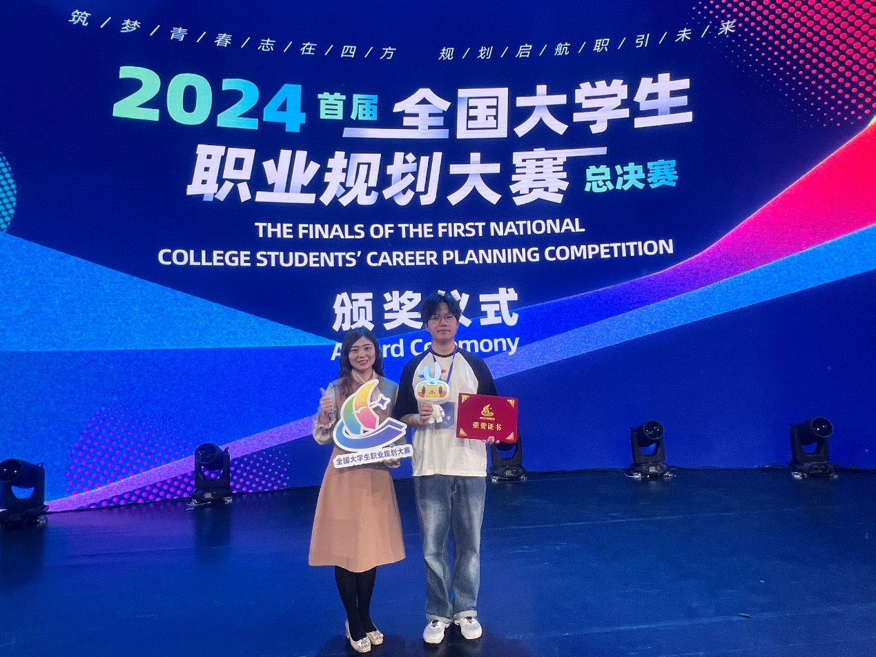 5月10日至12日,首届全国大学生职业规划大赛全国总决赛在上海举行,我院22级本科生王哲获成长赛道全国银奖。