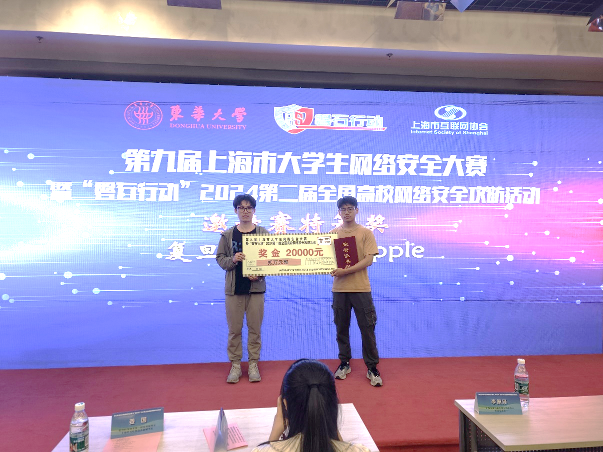 经过激烈角逐,复旦大学pineapple战队勇夺本次大赛攻防赛桂冠,获得特等奖,江苏安全技术职业学院灵盾战队等4支队伍获得一等奖,东南大学SUS战队等9支队伍获得二等奖,广东外语外贸大学Hax1on战队等16支队伍获得三等奖。大赛针对上海地区高校单独设立奖项,评出第九届上海市大学生网络安全大赛特等奖1名、一等奖2名、二等奖3名及三等奖4名。信息安全作品赛经过线上汇报、答辩,决出了最终奖项,其中来自北京航空航天大学的作品获得特等奖,东华大学的作品获得一等奖,北京电子科技学院等3个学校的作品获得二等奖,上海立信会计金融学院等5个学校的作品获得三等奖。大赛还评出优秀科普作品奖6件,分别由来自东华大学等学校的6件作品获得。赛后,信息安全作品赛一等奖、东华大学计算机学院学生孙文倩表示,“参加大赛为我提供了检验自身能力的绝佳机会,让我对正在研究的领域有了更全面更深入的了解。”