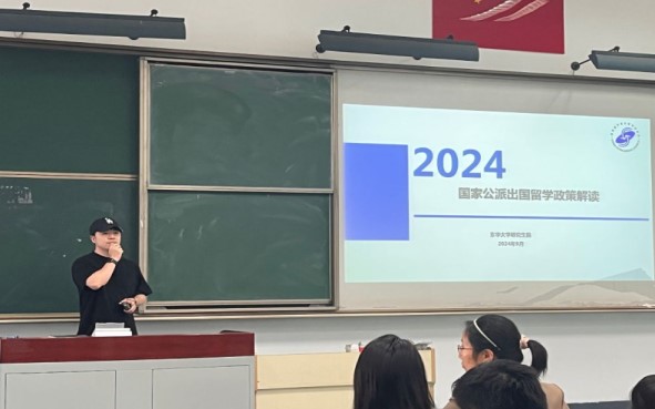 随后,东华大学研究生院吴连超从国家留学基金管理委员会介绍、近年国家公派出国留学基本情况、公派出国留学奖学金项目等方面全面解读了国家公派出国留学政策。