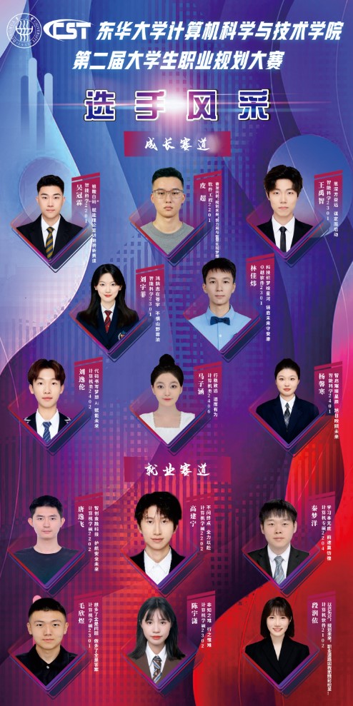 本次比赛分为初赛和决赛两个环节,分为成长赛道和就业赛道。学院开展“计算机科学与技术学院第二届大学生职业规划大赛动员大会暨备赛培训会”、“赛前专题培训会”等多场赛前动员和指导讲座,学生们积极踊跃的报名,大赛累计收到400余份参赛作品,经过初赛选拔,共有8位成长赛道选手和6位就业赛道选手脱颖而出,进入到决赛环节。