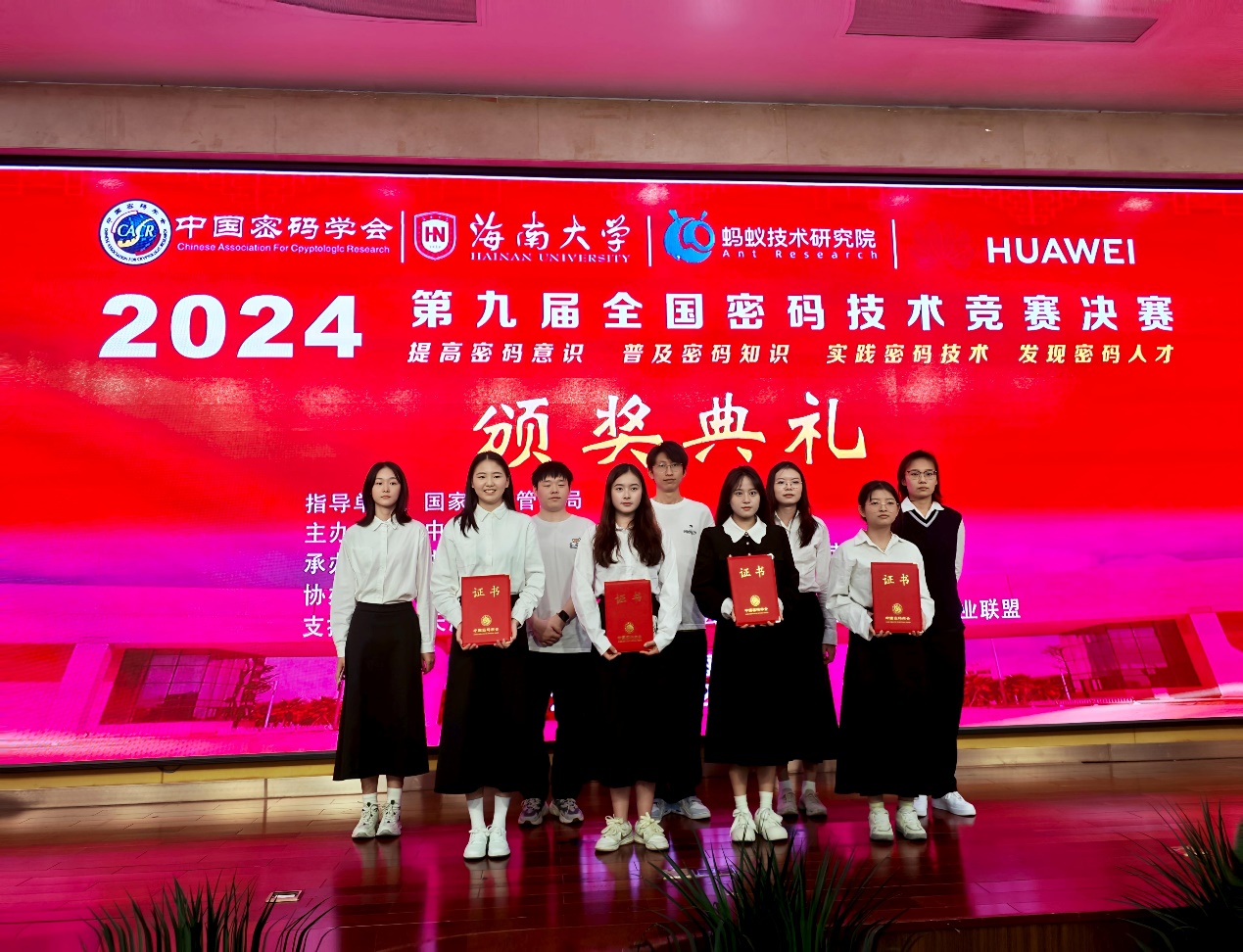 11月30日,由国家密码管理局指导,中国密码学会主办的第九届全国密码技术竞赛在海南大学圆满落幕。本次大赛吸引了来自全国各大高校、企业和科研院所等共计92家单位、462支队伍、1386名队员参赛,最终来自上海交通大学、复旦大学、武汉大学、山东大学、东华大学等单位的171支队伍成功晋级决赛。我院派出的3支参赛队伍经过激烈角逐,喜获全国一等奖1项、三等奖2项的优异成绩。