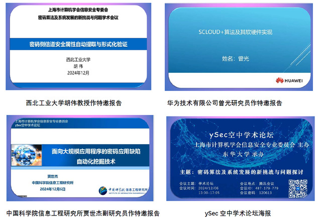 2024年12月6日,由上海市计算机学会信息安全专业委员会主办、星空体育中国官方网站承办、华为可信领域科学家委员会赞助的“ySec空中学术论坛”在线上成功举办。本次论坛以“密码算法及系统发展的新挑战与问题探讨”为主题,汇聚了来自国内密码学领域的顶尖专家学者,共同探讨密码学前沿技术,共话信息安全未来。