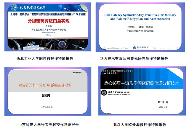 论坛在上海市计算机学会信息安全专业委员会主任、国家杰青、上海交通大学特聘教授刘胜利老师的致辞中拉开帷幕,东华大学李玮教授担任主持,论坛邀请了来自国内密码领域高等院校、科研机构和知名企业的七位专家学者,分别围绕密码算法及系统的最新理论研究和技术发展成果进行深入探讨,他们分别是北京航空航天大学网络空间安全学院的吕继强教授、中国科学院大学密码学院孙思维教授、山东师范大学信息科学与工程学院张文英教授、武汉大学国家网络安全学院欧长海教授、西北工业大学网络空间安全学院胡伟教授、华为技术有限公司曾光研究员、中国科学院信息工程研究所贾世杰副研究员。