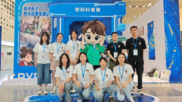 我院信息安全专业本科生和研究生黄佳音、李诗雅、平婉怡、连晟、孙逸凡、徐春雪、范毅苗、邓捷、张原铭等同学,首次深度参与了本届展会密码科普展的志愿者服务活动。他们依托扎实的信安专业知识,将复杂的密码原理引导转为妙趣横生的互动体验,为参观者带来了丰富而生动的信息安全科普体验,成为展会科普的一道亮丽风景线。