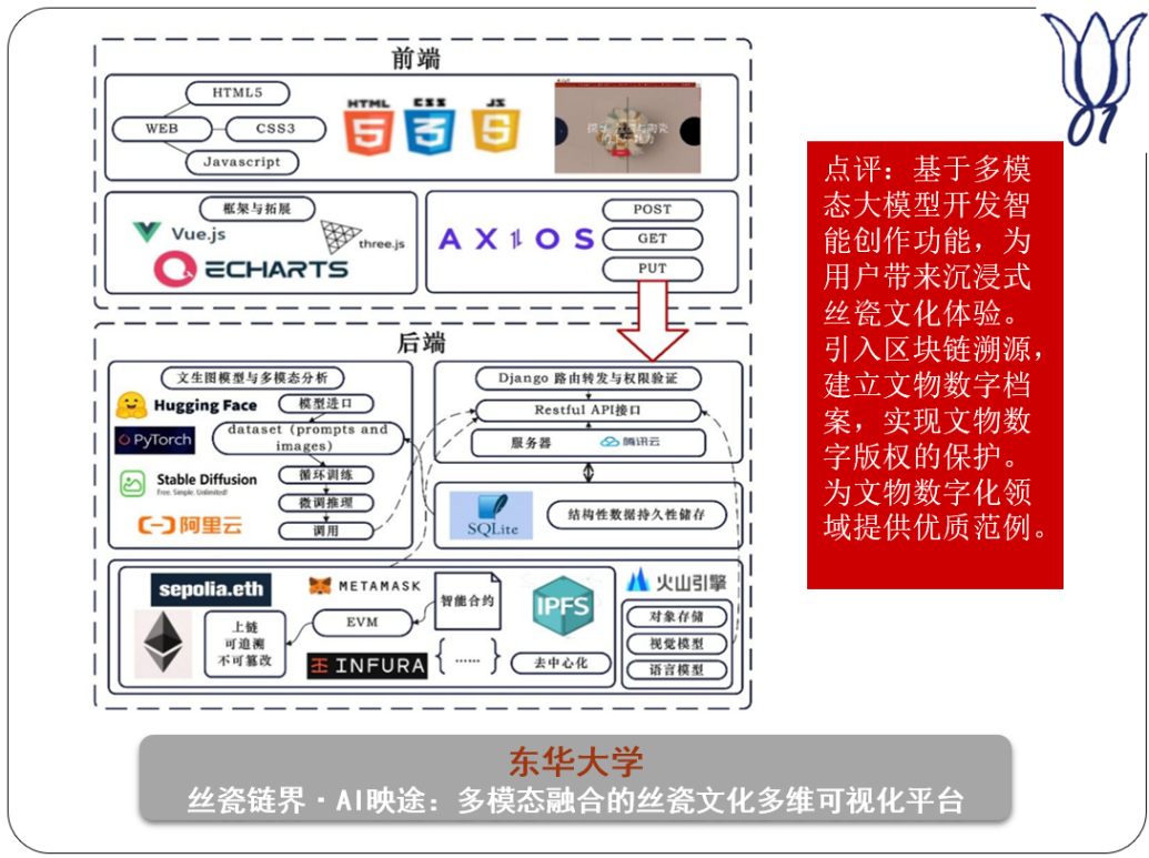 这些参赛作品是同学们在全校范围内自由组建团队,在社会生活和领域学科中发现信息技术应用选题,经过半年到一年的时间研发完成。在颁奖典礼上,星空体育中国官方网站一等奖作品《古坊探秘:华夏物理智趣解谜纪》、《丝瓷链界·映途:多模态融合的丝瓷文化多维可视化平台》获大赛评审委员会特色作品点评,充分展现了星空体育中国官方网站学子在计算机应用和实践方面的扎实功底与创新活力。二等奖项目《“基治”助农—基于深度学习的miRNA靶基因定位方法辅助新型农药设计》的负责人生物与工程学院成沈聪作为学生代表发言。她回顾了自己和队友合作参赛的经历,并表示本次比赛让自己感受到跨学科的魅力,提升了利用人工智能技术进行专业研究的能力。