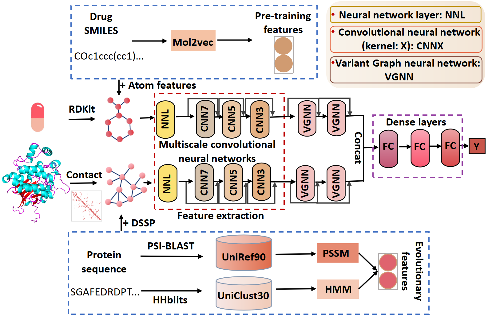 Fig. 1. Architecture of drug-target binding affinity prediction model