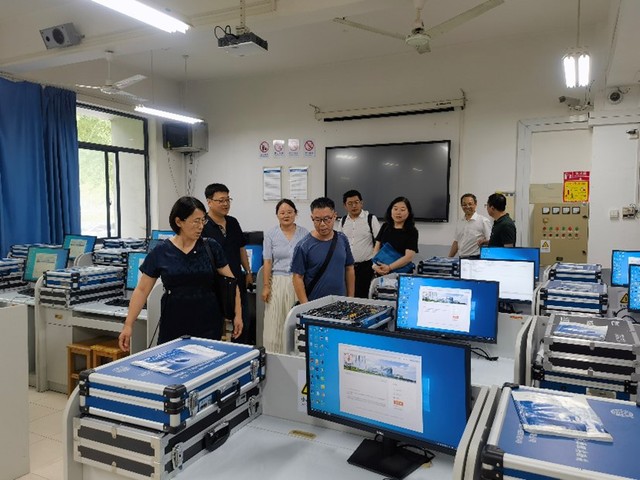 考察组首先考察了示范中心部分专业教学实验室。专家们对实验室的硬件配置给予了高度评价,特别是对大数据实验教学平台的资源分配机制、实验开展内容,以及基于国产工业大数据泛在操作系统如何开展教学创新实践表现出了浓厚兴趣。面对专家们的提问,实验教师耐心解答,详细介绍了平台的使用情况及其在培养学生实践能力和创新思维方面的成效。