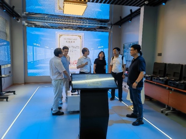 接着,专家组对示范中心的综合创新实验室、服务器机房和校企联合实验室进行了考察。在综合创新实验室,专家们与机器人NAO进行了趣味互动,对无人机和智能小车等创新实验项目的开展情况进行了深入了解。在服务器机房,专家们对机房的建设规模、运维管理及未来发展规划给予了充分肯定,并就如何进一步提升实验教学资源的使用效率和管理水平提出了宝贵建议。