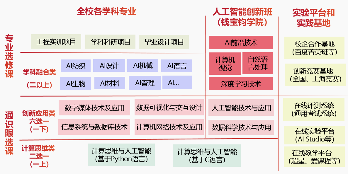 Y:各学科专业方向上的AI学科融合课程。